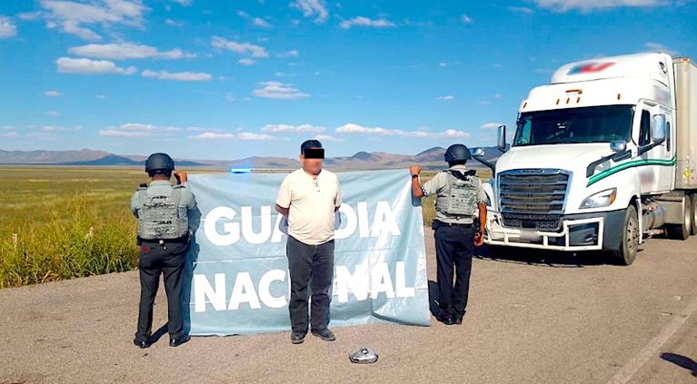 Elementos de la Guardia Nacional detuvieron en el estado de Sonora al conductor de un tractocamión doblemente articulado que transportaba posible metanfetamina.