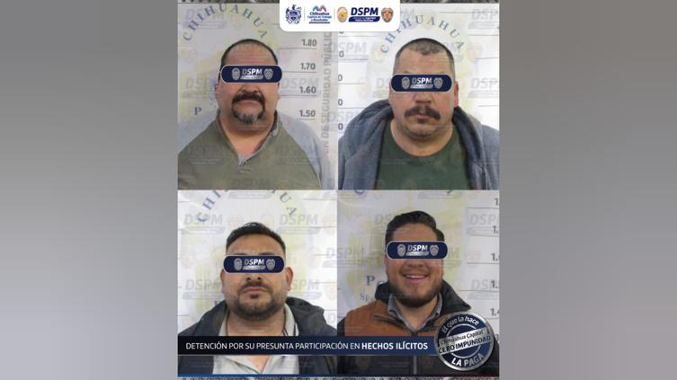 Los detenidos se identificaron como: David Fernando A. G., de 28 años; Reydesel Rodolfo M. L., de 51; Manuel Iván P. S., de 33; y Óscar Manuel F. U., de 45. Todos fueron trasladados al Centro de Detención Municipal Zona Sur para su puesta a disposición correspondiente.