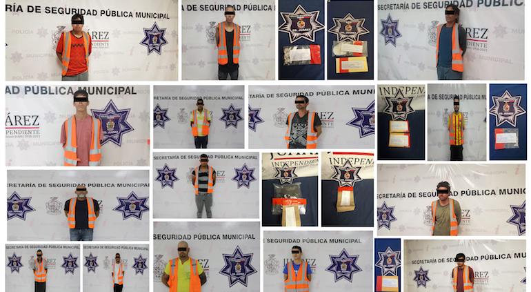 La Policía reportó la detención de 27 personas en posesión de droga en distintas intervenciones en Ciudad Juárez.