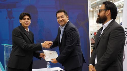 En la ceremonia de graduación, Roberto Esquivel, director de Vinculación del Cecytech, resaltó que este modelo acerca a los jóvenes a la industria y a las necesidades reales del mercado laboral.