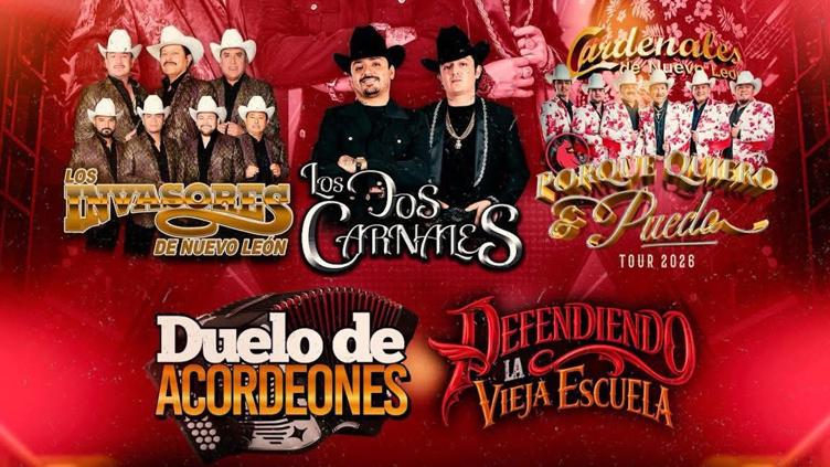 De acuerdo con la información difundida por los organizadores, el concierto reunirá a tres de las agrupaciones más representativas del género norteño, en un formato que destaca el protagonismo del acordeón, instrumento característico de este estilo musical.