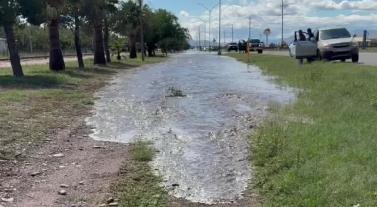 Captaron el momento exacto en que el agua llegó después de muchos años al Corredor Comercial en Cuauhtémoc.