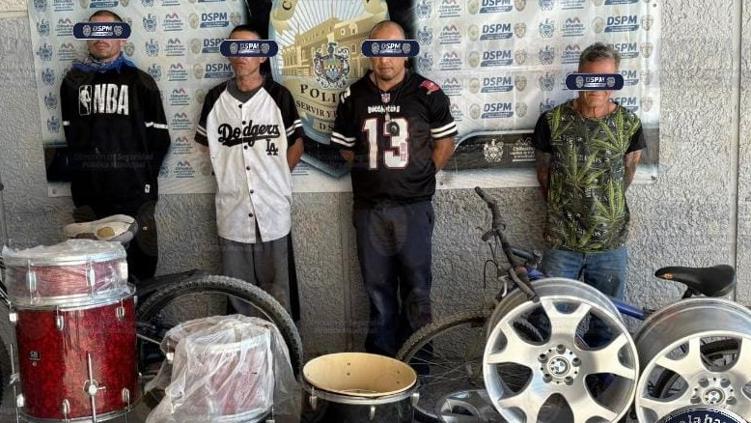 Agentes de la Dirección de Seguridad Pública Municipal detuvieron este domingo a cuatro hombres acusados de robo sin violencia a una bodega ubicada en la colonia 20 Aniversario, al norte de la ciudad.
