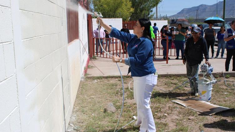 Encabezó Myrna Monge "pinta tu escuela" en primaria Victor Hugo Rascón