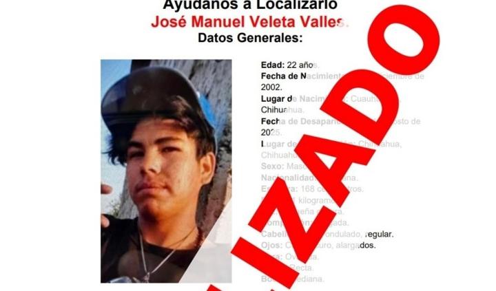 La Unidad de Investigación de Personas Ausentes y/o No Localizadas de la Fiscalía de Distrito Zona Centro informó que fue localizado sano y salvo José Manuel V. V., de 22 años de edad, quien contaba con reporte de ausencia interpuesto el pasado lunes en la ciudad de Chihuahua.