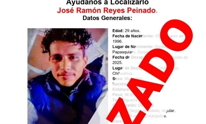 La Unidad de Investigación de Personas Ausentes y/o No Localizadas de la Fiscalía de Distrito Zona Centro nformó que fue localizado con bien José Ramón R. P., de 29 años de edad, quien contaba con reporte de ausencia en la ciudad de Chihuahua.