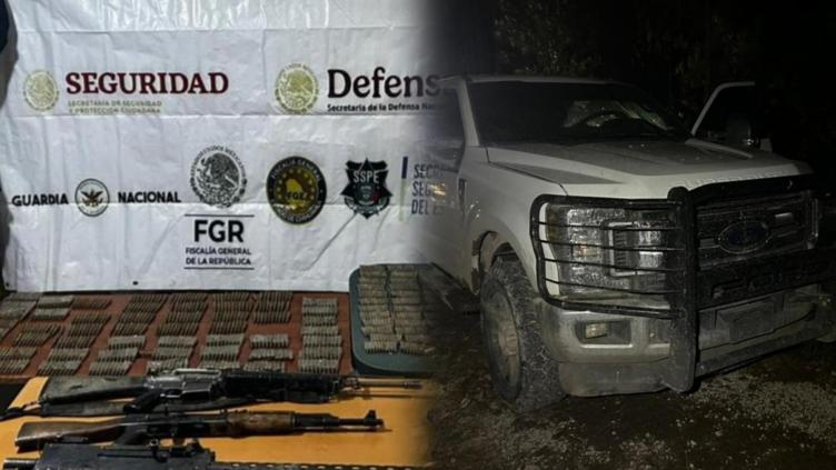 En el lugar fueron asegurados una camioneta Ford Super Duty con blindaje artesanal, así como armas largas y cientos de cartuchos de distintos calibres, mismos que quedaron a disposición del Ministerio Público para las investigaciones correspondientes.