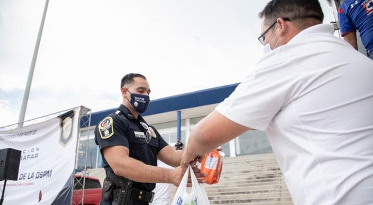 Como una forma de agradecimiento y reconocimiento a su trabajo en medio de la contingencia sanitaria por el COVID-19, Grupo Bafar, a través de su fundación, hizo la entrega simbólica de 500 despensas, donadas para los agentes y sus familias.