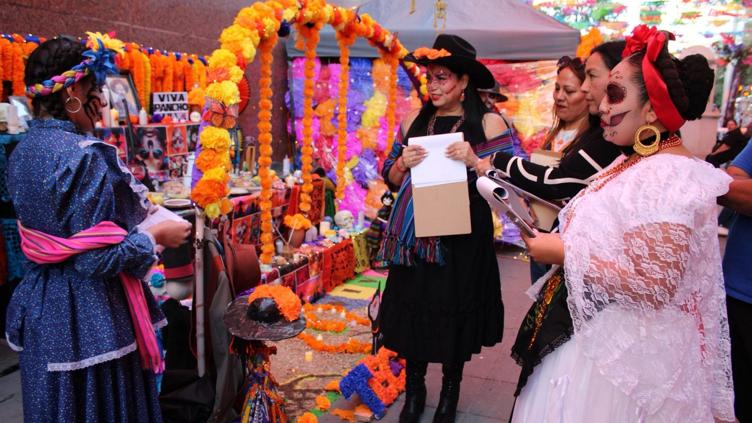 La regidora Myrna Monge, presidenta de la Comisión de Educación del Ayuntamiento, acompañó al alcalde Marco Bonilla en la entrega de reconocimientos a las instituciones educativas ganadoras del concurso de Altares de Muertos, actividad enmarcada dentro del festival “El Regreso de las Ánimas”, que reunió a cerca de 100 mil personas en el Centro Histórico de la ciudad.