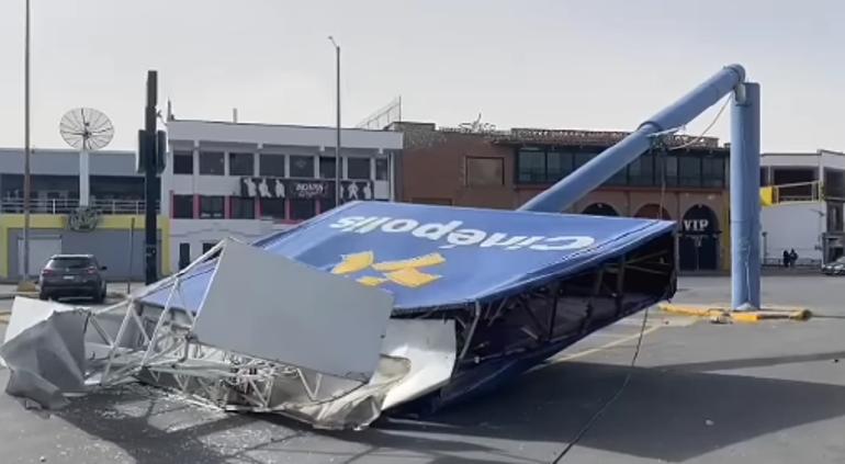 Esta tarde en Plaza de las Américas un espectacular de la famosa tienda de cines Cinépolis acabo en el suelo del estacionamiento de la plaza.