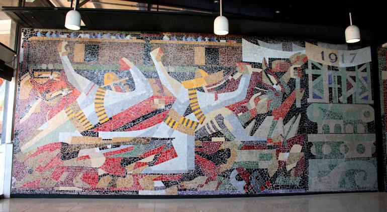 El mural lleva por título “Revolución Constructiva” y resalta los inicios y el impulso de la gesta revolucionaria, con la inclusión de un espacio dedicado al Instituto, que vale la pena apreciar si se acude a esta unidad médica.