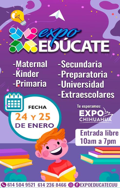 La exposición educativa Expo Edúcate se llevará a cabo los próximos 24 y 25 de enero en el Centro de Exposiciones de Chihuahua, con la participación de más de 30 instituciones de todos los niveles y la asistencia estimada de más de 2 mil personas en busca de opciones educativas.