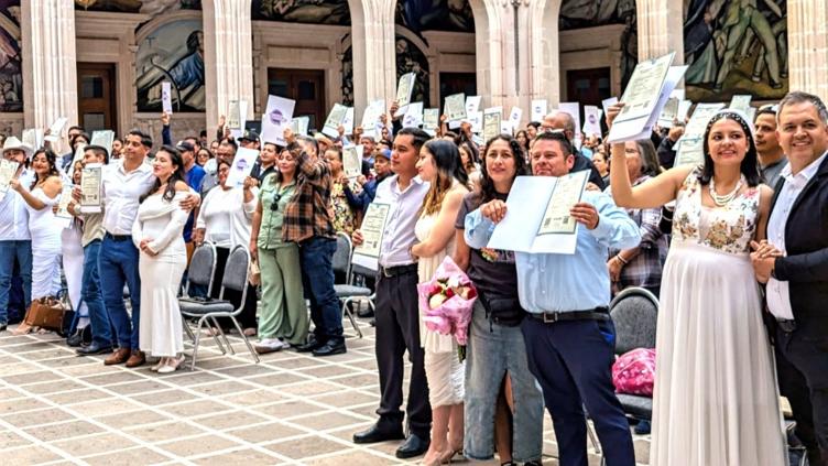 150 parejas formalizaron su unión durante los "Matrimonios Colectivos 2026", celebrados en Palacio de Gobierno, donde autoridades fueron testigos de la significativo momento en el que se unirán más de 4 mil parejas en todo el estado.
