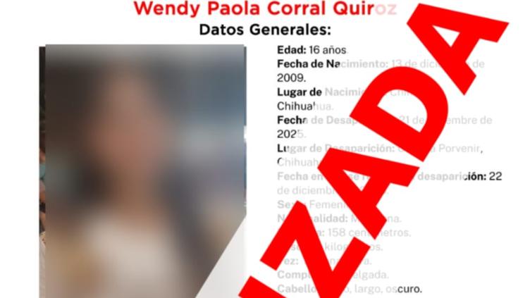 Tras activar los protocolos, la FEM localizó sana a W.P.C.Q., de 16 años, el 23 de diciembre en colonia El Porvenir.