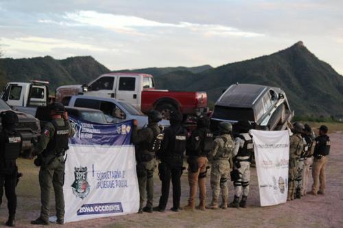 SSPE ejecuta operativo en Moris, asegurando 12 vehículos robados con blindaje y daños de arma; 150 elementos y fuerzas armadas colaboraron en 10 horas de patrullaje táctico.