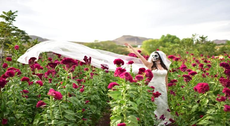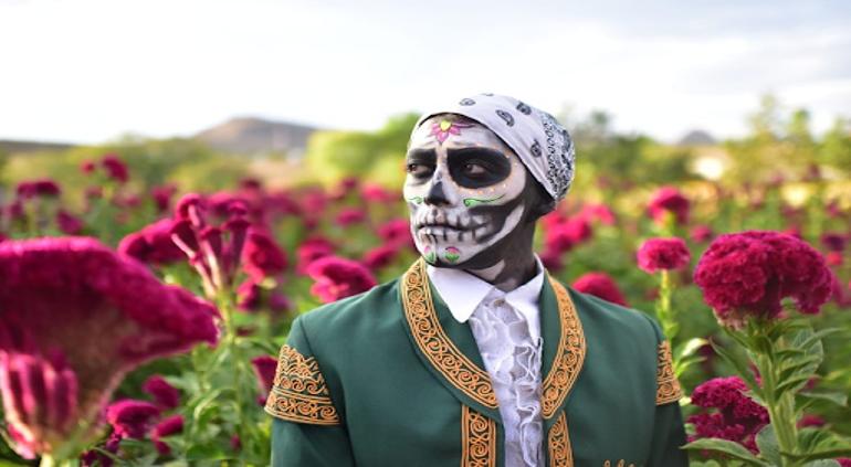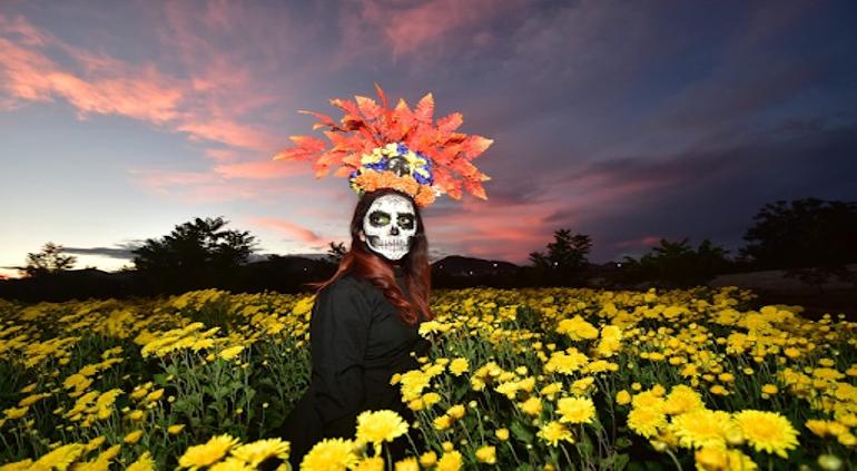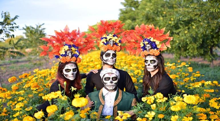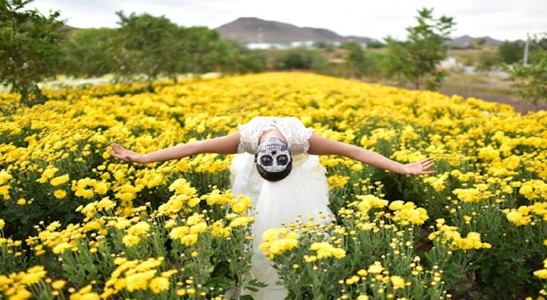 La galería muestra el paisaje extenso con flores de Cempasúchil y Mano de León, representativas del Día de Muertos, la cual le dio ese toque tradicional y colorido a las fotografías de los estudiantes.