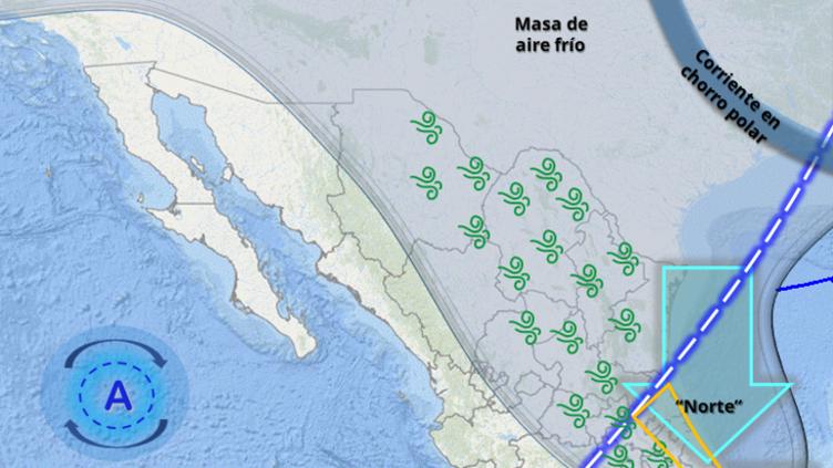 Entre sus primeros efectos serán rachas de viento de 35 a 50 km/h con posibles tolvaneras en Chihuahua y los estados del noreste.