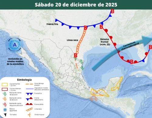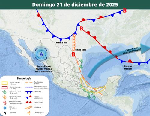 Esto tiene relación con un anticiclón que se presenta cerca de Baja California y avanza hacia Chihuahua, que estaría evitando la entrada del sistema frontal.