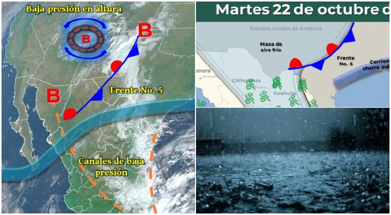 En el caso de Chihuahua y otros estados del norte, las lluvias se deberán a que “el frente No. 5 se extenderá con características de estacionario sobre la frontera norte de México, en interacción con la corriente en chorro subtropical”.