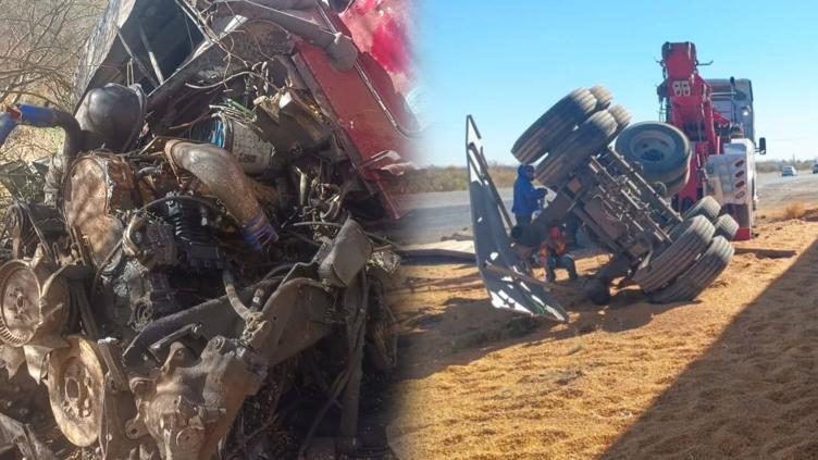 De acuerdo con los primeros reportes, el tractocamión transportaba presuntamente grano cuando el tren lo embistió en el paso a nivel.