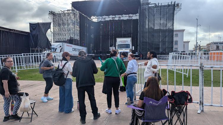 A horas de que inicie el evento, los fanáticos del intérprete se han instalado en los alrededores del escenario. Llevan consigo sillas de acampar, sombrillas y alimentos para hacer frente a las inclimencias del clima.