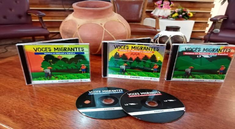 Para ello, fueron grabados relatos infantiles y otros materiales en las tres lenguas mencionadas, mismas que integran tres producciones discográficas, bajo el título de Voces Migrantes.