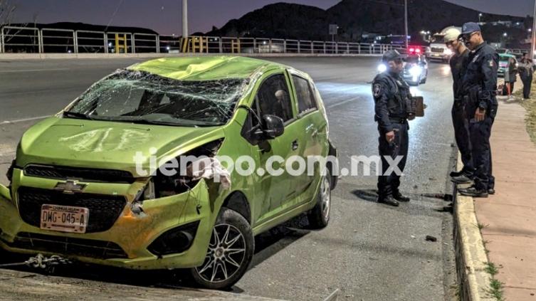 El conductor de un vehículo Spark perdió el control del volante, se brincó el camellón central y volcó sobre el periférico R. Almada, donde resultaron tres personas heridas.