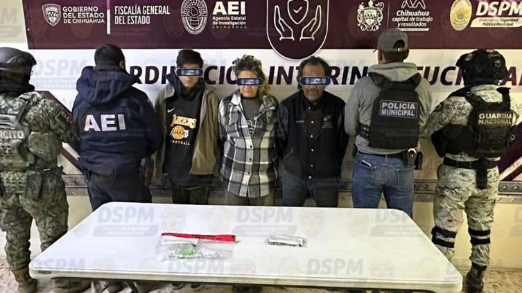 Como resultado de un operativo coordinado entre la Dirección de Seguridad Pública Municipal, la Agencia Estatal de Investigación, la Guardia Nacional y la Secretaría de la Defensa Nacional, dos hombres y una mujer fueron detenidos por su presunta responsabilidad en delitos contra la salud, tras un cateo realizado en la colonia San Jorge, al sur de la ciudad.