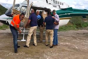 Como no podían llevar apoyos en vehículos todo terreno optaron por el uso del helicóptero, que movilizó los insumos básicos que aportaron la Secretaría de Desarrollo Humano y Bien Común y el DIF Estatal.