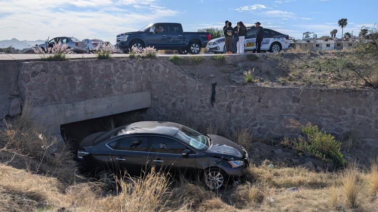 Una conductora de 30 años resultó ilesa tras derrapar su Nissan Sentra en la rotonda de Av. Los Nogales y Abolición de la Esclavitud; el vehículo cayó a un arroyo detrás de Quintas Sebastián.