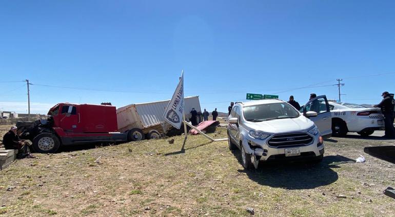 Un choque entre un trailer y dos vehículos ocurrió esta tarde a la altura del kilómetro 22 de la carretera a Ciudad Juárez, el hecho ocasionó que el trailer saliera del camino.
