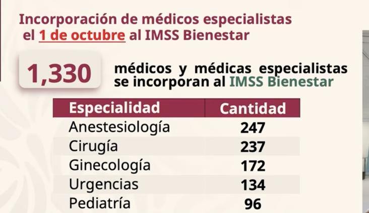 El funcionario detalló que las incorporaciones comenzaron el 1 de octubre y se distribuyen en cinco regiones del país. Entre los nuevos especialistas destacan 247 anestesiólogos, 237 cirujanos, 172 ginecólogos, 134 urgenciólogos, 96 pediatras, 68 traumatólogos y 59 internistas, además de médicos en áreas altamente especializadas como neonatología, neurocirugía, oncología, hematología y neurología pediátrica.