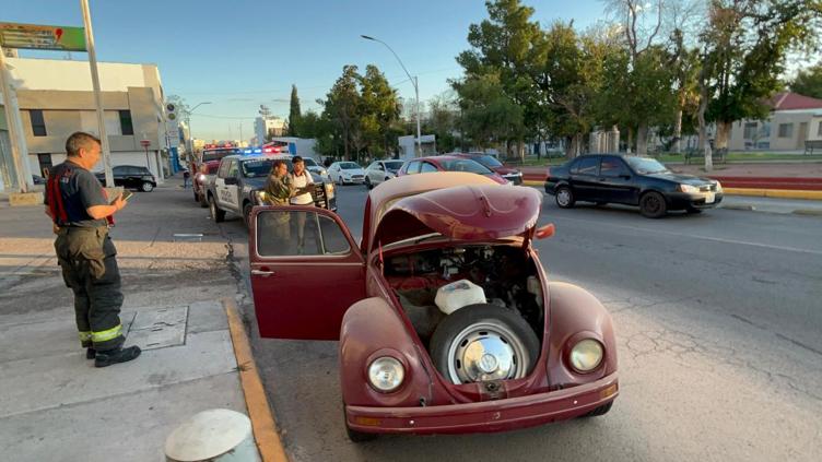 Esta mañana, el incendio del motor de un Volkswagen “bocho” de color guinda provocó la movilización de unidades de emergencia en la avenida Ocampo, cruce con De la Llave, en la colonia Centro. El conductor, un joven, se alarmó al notar las llamas provenientes del motor del vehículo.
