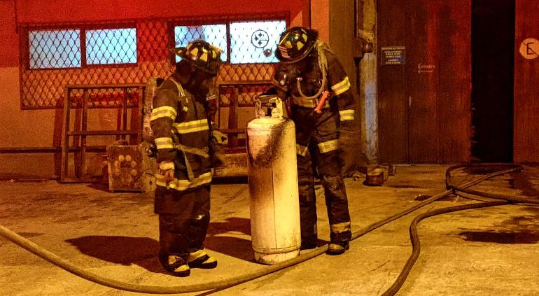 Tragahumos sofocaron las llamas en el tanque de gas y lo sacaron del lugar.