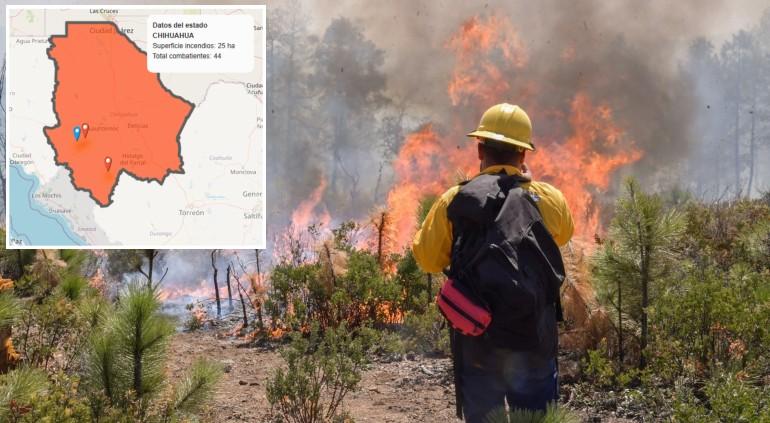 El reporte de la Conafor, con información hasta las 8:03 p.m. del sábado, registró en el país cinco incendios forestales activos, dos de ellos en el estado de Chihuahua, mientras que un tercero está liquidado.