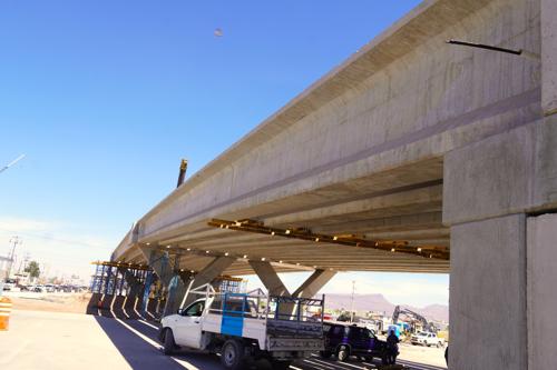 La Dirección de Obras Públicas dio a conocer que ya fueron instaladas 24 trabes en la construcción del paso superior ubicado en la intersección de la carretera Chihuahua-Aldama y la avenida Fuerza Aérea.
