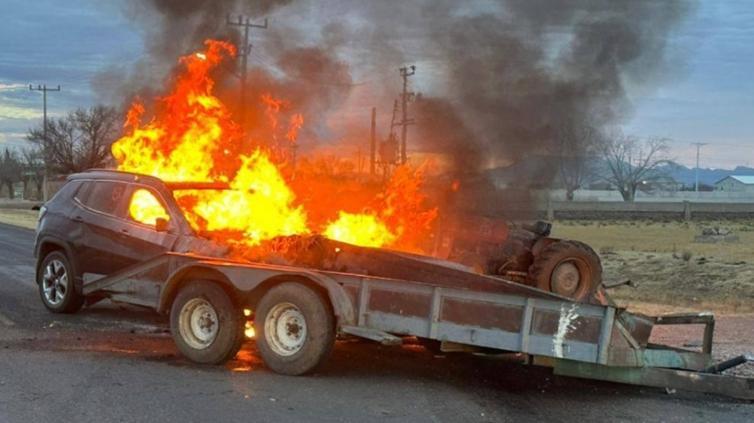 El informe señaló que el Jeep impactó la parte trasera del tractor porque su conductor no guardó la distancia de seguridad. A consecuencia del impacto, el Jeep se incendió en el sitio y el video registró la secuencia desde el choque hasta el inicio del fuego.