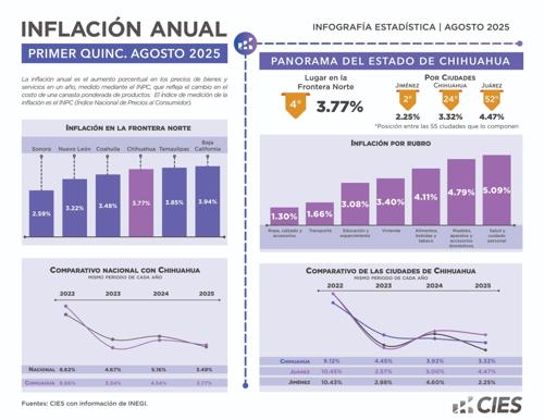El CIES mostró los datos de inflación de tres urbes chihuahuenses: Ciudad Jiménez, Chihuahua y Ciudad Juárez.
