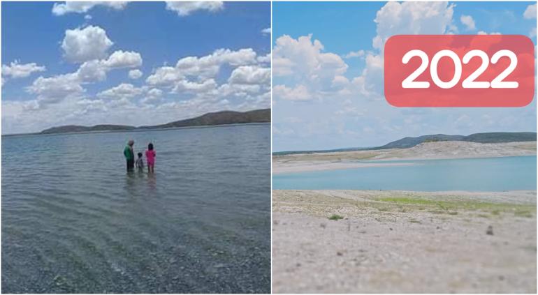 Comparan fotografías de lago El Tigre; "ahora es un charco"