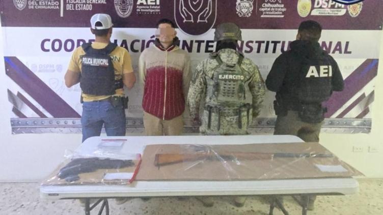 Elementos de la Agencia Estatal de Investigación detuvieron a un hombre en posesión de drogas y armas de fuego durante un operativo conjunto realizado en la ciudad de Chihuahua.