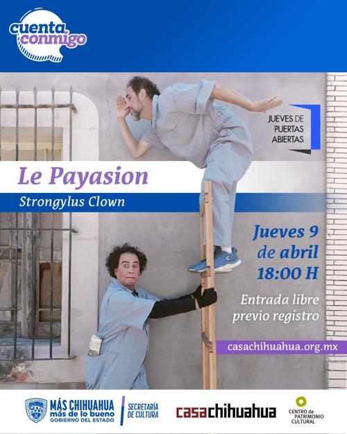 Casa Chihuahua anunció el arranque de sus actividades culturales por el mes de abril con la puesta en escena “Le Payasion”, a cargo de la compañía Strongylus Clown.