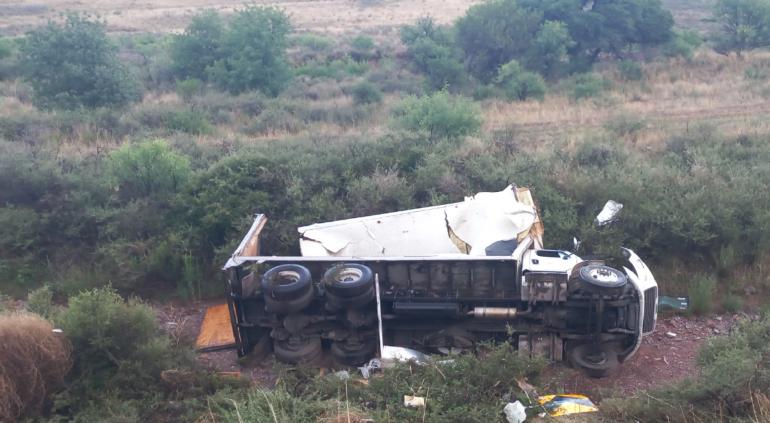 Un torton desbarrancó y volcó en el kilómetro 24 de la carretera Cuauhtémoc- Chihuahua, luego de que en una curva perdió el control. El conductor de 23 años resultó herido de consideración.