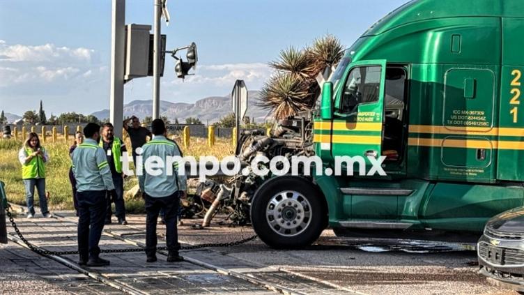 El conductor de un tráiler no se percató que venía el tren y fue impactado en las vías ubicadas sobre la avenida Juan Escutia, entre Industrias y Colegio Militar, donde resultaron cuantiosos daños materiales.