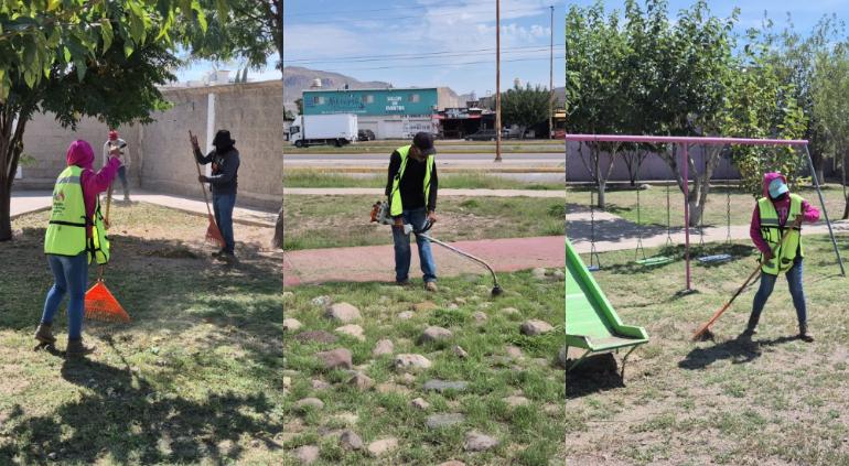La Dirección de Mantenimiento Urbano, realiza limpieza diaria de parques públicos de Chihuahua Capital, con corte y retiro de maleza, limpieza de guarniciones, recolección de basura, entre otras.