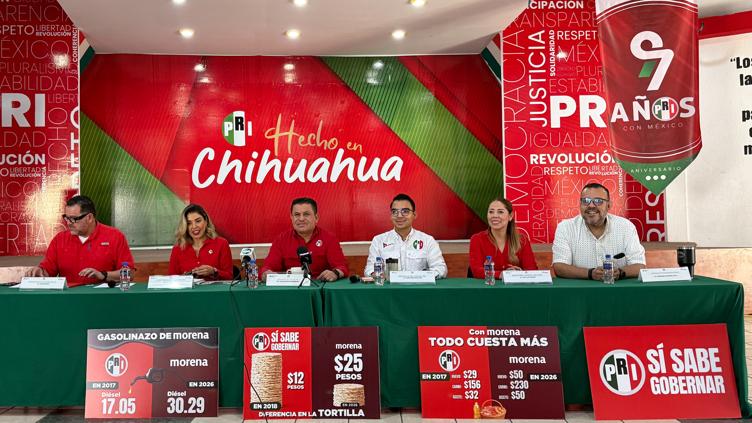 Junto al dirigente estatal, Alex Domínguez y otros actores políticos del PRI en Chihuahua, exigieron al Gobierno Federal contener la inflación y proteger el gasto familiar tras datos del INEGI que, afirmó, mostraron incrementos en productos básicos que castigaron directamente el bolsillo de los mexicanos, especialmente en frutas y verduras en marzo.