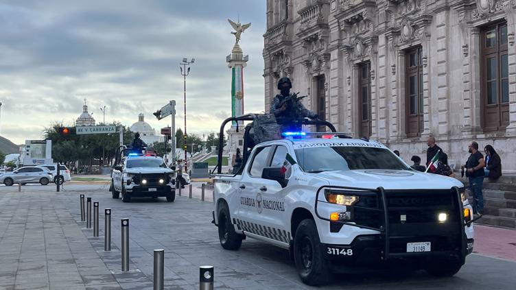 Elementos del Ejército Mexicano y Guardia Nacional, arribaron a Palacio de Gobierno para el desarrollo de la Mesa para la Construcción de la Paz.