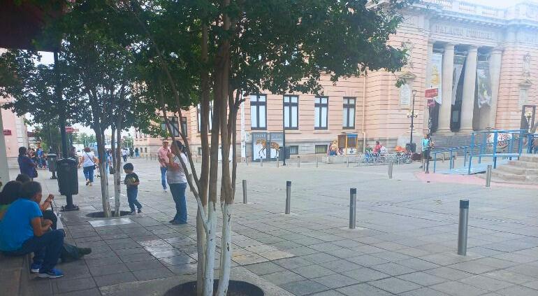 Comenzó a chispear, de modo que no provocó que mucha gente buscara refugio, pues múltiples transeúntes se mantuvieron al aire libre para aprovechar el refrescamiento.