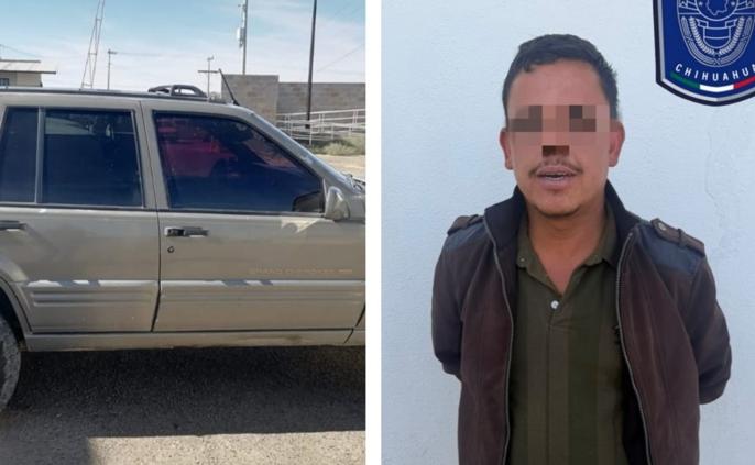 La detención ocurrió la tarde de ayer lunes, mientras el individuo conducía una camioneta marca Jeep, línea Grand Cherokee, modelo atrasado, de color arena, sobre el antiguo camino a Villa Escobedo, a la altura de la colonia El Vado.