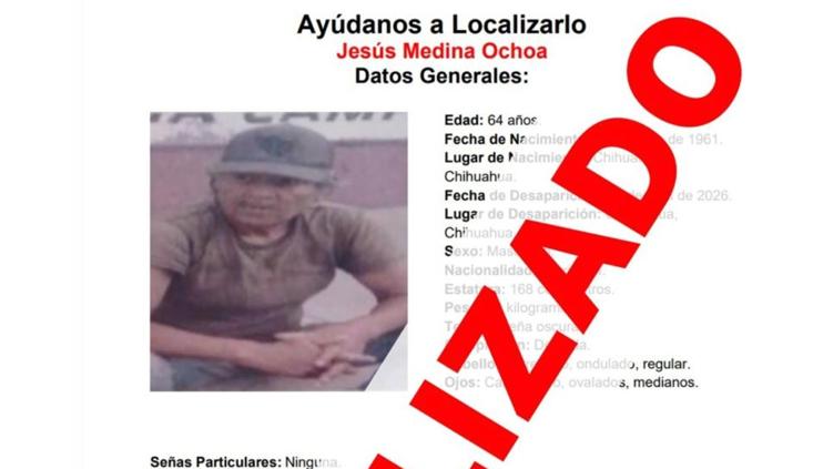La Fiscalía de Distrito Zona Centro informó la localización con vida de un hombre de 61 años de edad que contaba con reporte de ausencia en la ciudad de Chihuahua.