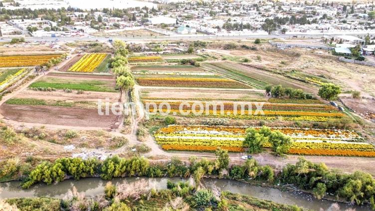 A pocos días de la celebración del Día de Muertos, los campos de cultivo ubicados entre la carretera a Aldama y Palestina, en la zona de Tabalaopa, se han transformado en un vibrante espectáculo natural, gracias los colores de las flores de cempasúchil y crisantemo.